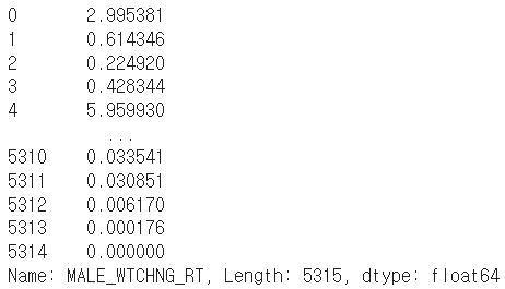data['MALE_WTCHNG_RT'] = (data['MALE_4_9YO_WTCHNG_RT']+data['MALE_N10S_WTCHNG_RT']+data['MALE_N20S_WTCHNG_RT']+data['MALE_N30S_WTCHNG_RT']+data['MALE_N40S_WTCHNG_RT']+data['MALE_N50S_WTCHNG_RT']+data['MALE_N60S_ABOVE_WTCHNG_RT'])/7