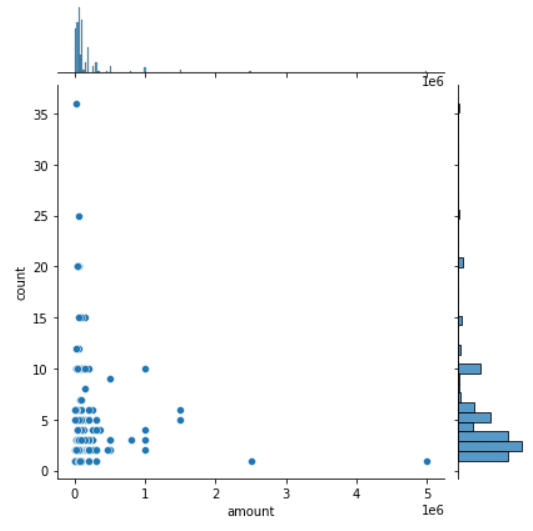 - sns.jointplot: 산점도와 히스토그램을 함께 그려준다. kind='kde'(오른쪽)로 하면 영역들을 등고선으로도 볼 수 있다.