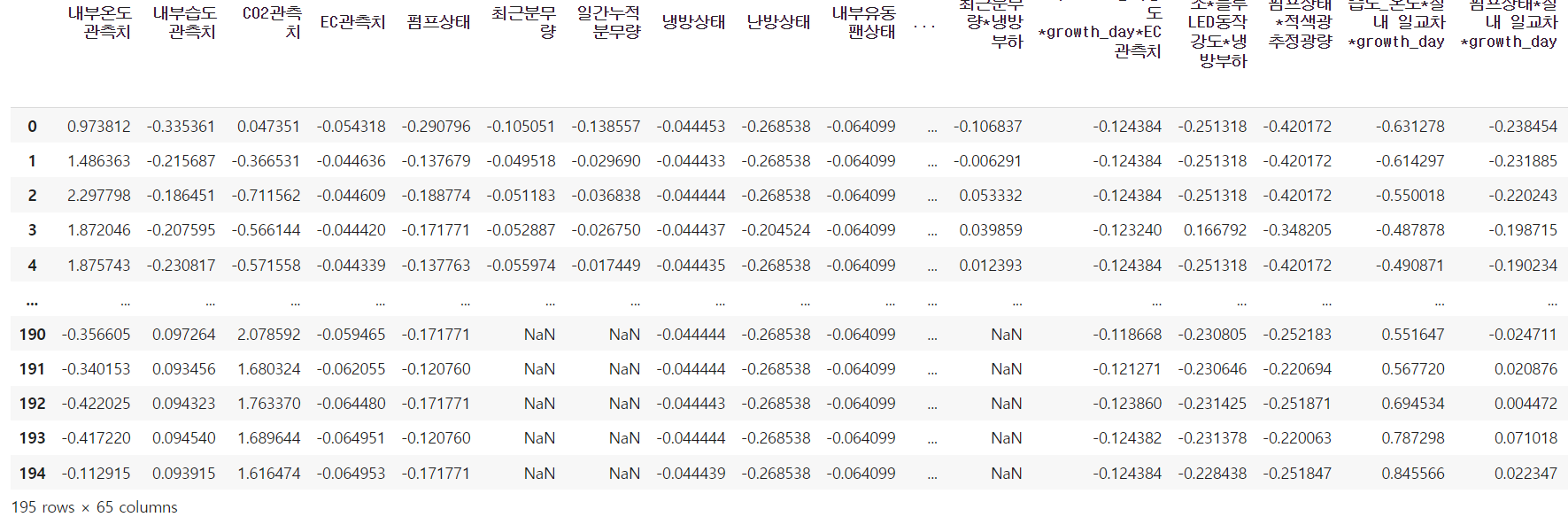 '최근분무량*냉방부하', '레드 LED동작강도*growth_day*EC관측치',