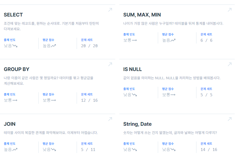(1) 데이터 (2) 개인 프로젝트 (3) 알고리즘 (4) IT, CS (5) 비즈니스 (6) 콘텐츠/마케팅 의 순서입니다.